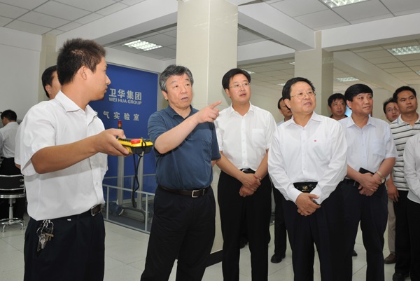 衛(wèi)華集團(tuán)董事長(zhǎng)、總裁韓憲保陪同盧展工一行參觀了集團(tuán)技術(shù)檢驗(yàn)測(cè)試中心和和電器實(shí)驗(yàn)室。在電器實(shí)驗(yàn)室,盧展工饒有興趣地觀看了智能門式起重機(jī)、遠(yuǎn)程控制系統(tǒng)和帶載模型演示實(shí)驗(yàn),并詳細(xì)詢問(wèn)了我集團(tuán)產(chǎn)品的技術(shù)水平、應(yīng)用領(lǐng)域和市場(chǎng)情況。盧展工說(shuō),起重機(jī)最核心的是自動(dòng)控制部分,你們的產(chǎn)品在國(guó)內(nèi)具有地域優(yōu)勢(shì)和價(jià)格優(yōu)勢(shì),要把握好這些有利條件,繼續(xù)加強(qiáng)研發(fā),掌握核心技術(shù),才能有持續(xù)發(fā)展的動(dòng)力。